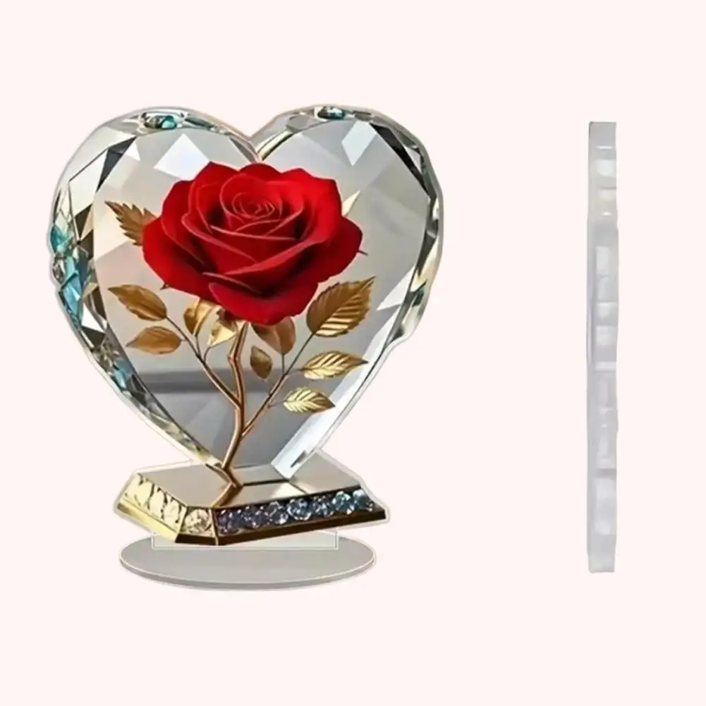 Acrylic Red Roses Decorations for Home Office Desk Enhance Visual Effects New Holiday Gift Ideas Artificial Blooming Plant Decor